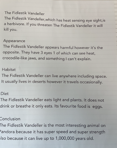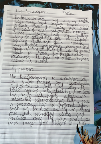 Over the past week, our class has been hard at work writing up our non-chronological reports inspired by the incredible creatures of Pandora. Using their imagination and carefully chosen vocabulary, pupils have created fantastical species, describing everything from unusual habitats and diets to fascinating adaptations and behaviours.