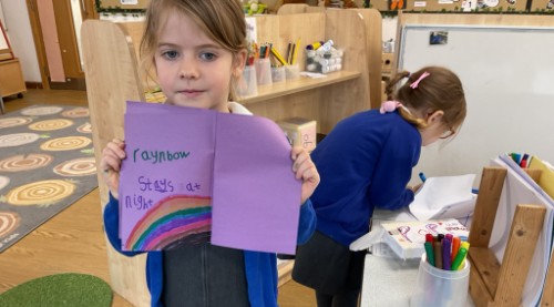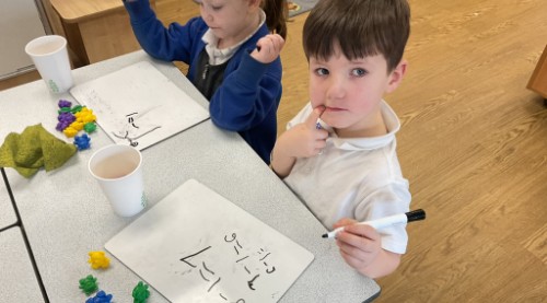 Writing is taught by modelling high quality sentences using selected grammar and vocabulary and supporting the children to experiment in drafting their own. For our youngest children, writing is taught through Drawing Club, where children draw their own images and select words to describe them.
