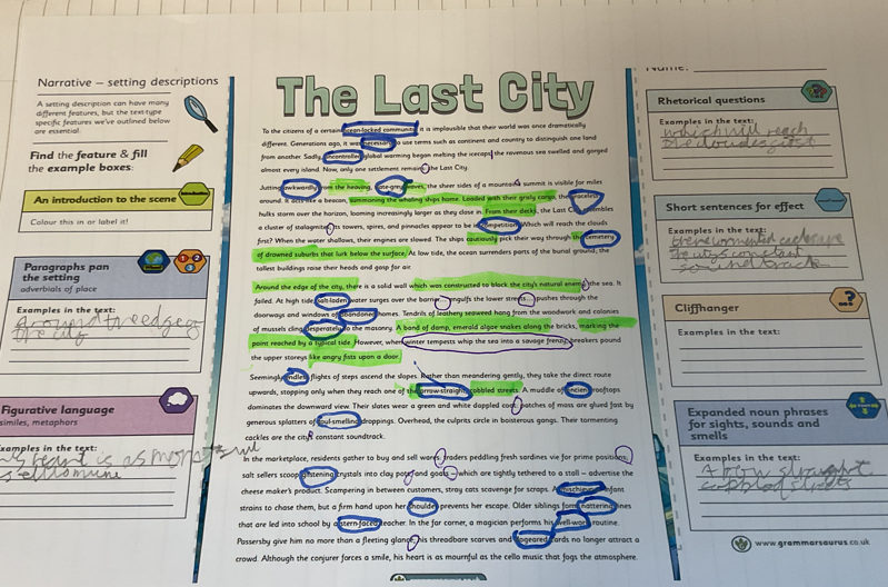 It's lovely to see the class back after Christmas and ready for a new term! In Maths, Year 5 have been learning about equivalent fractions, while Year 6 have been working on adding fractions. In English, we've started exploring example texts to help us write a setting story based on Pandora, focusing on using descriptive language to bring this incredible world to life. Here we have been spotting for different features to understand what makes a good text. It has helped us to understand how writers use devices such as noun phrases or figurative language. We're excited to see all the amazing work you'll create this term!