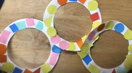 The children have also named and arranged shapes and created shape wreaths to hang up.