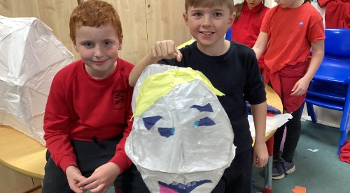 Kensa Class have been full of energy and curiosity this term! In history, we've been learning all about the Great Fire of London, exploring how it started and what life was like in 1666. PE has been packed with fun too-parachute games and dance sessions have kept us moving and smiling. A special highlight was when Nursery joined us for a Supertato-themed activity, bringing laughter and teamwork across the classes.