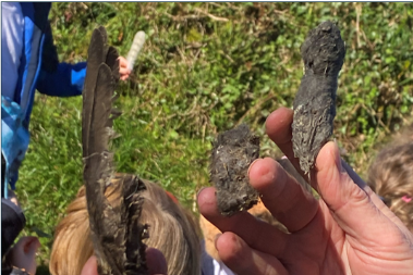 We then went down to the barn to hunt for owl pellets. We found a few along with some owl tail feathers.