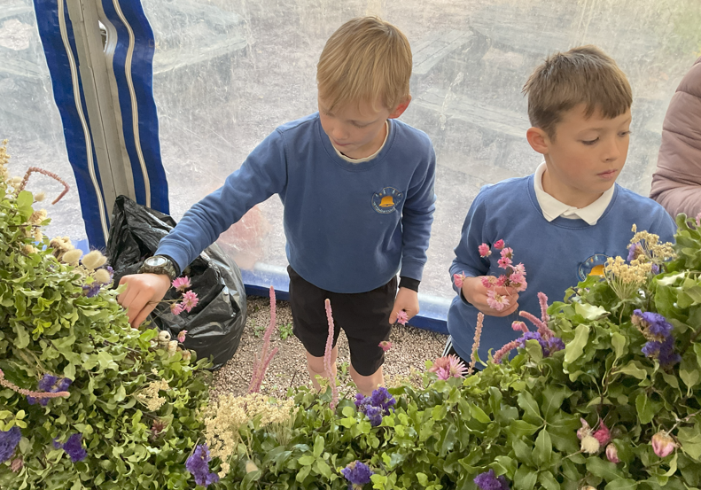 Year 5 pupils participated in the annual Cotehele House flower garland workshop this week. During the summer term, children grew, cut and dried flowers which they used to decorate the garland. The children's garland will appear in the restaurant over the festive period. Whilst there, the children were invited to see the main garland in the great hall, which was being constructed during our visit; it has over 32,000 flowers on it! Both garlands are stunning and well worth a visit if you get the chance. Thank you to volunteer Julie Marples for joining me, ensuring we had enough adults.