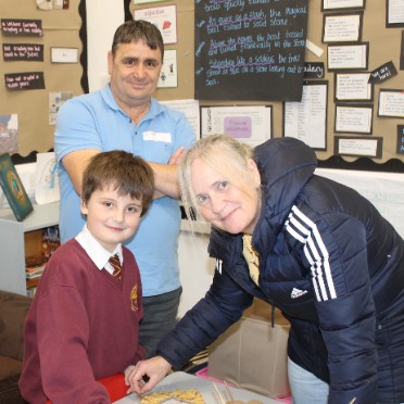 On Thursday we enjoyed making savoury dinosaur biscuits and the children practiced their mixing and rolling skills to create them.