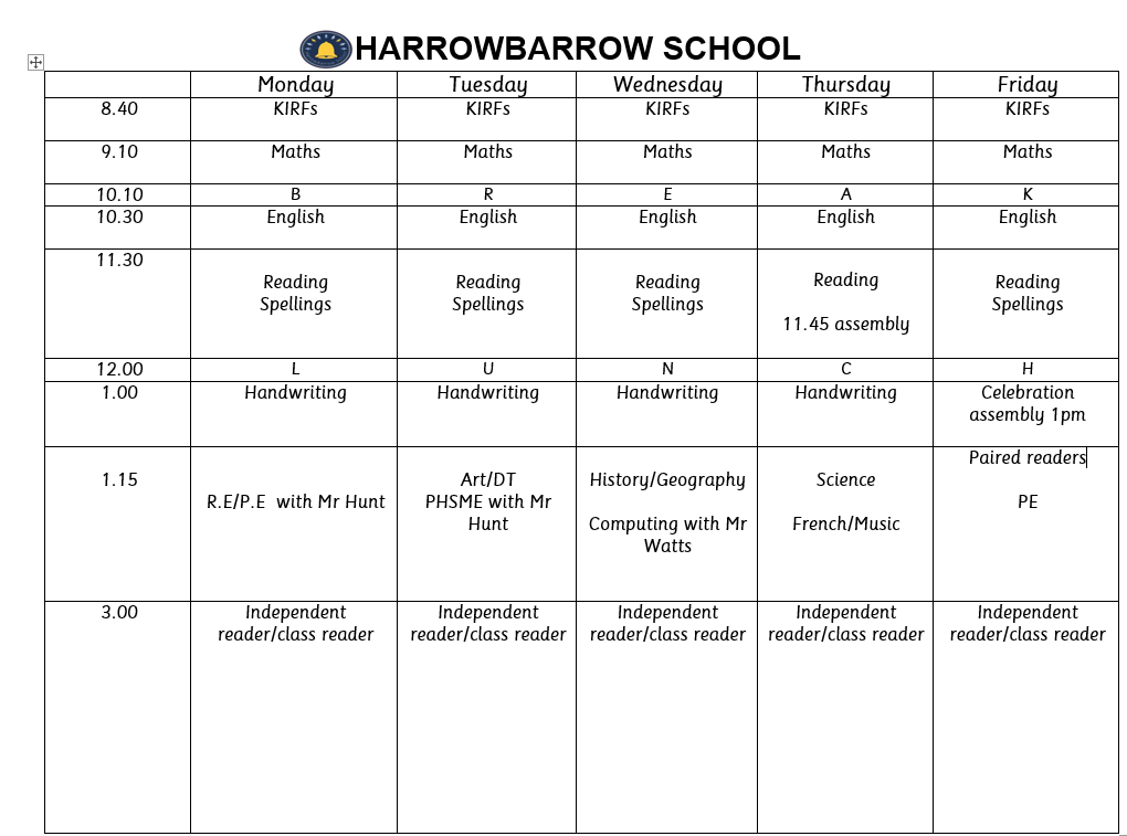 PE: PE will be on a Friday afternoon. Please can children come in wearing their school PE kits (no football kits please) on this day to save time in school.