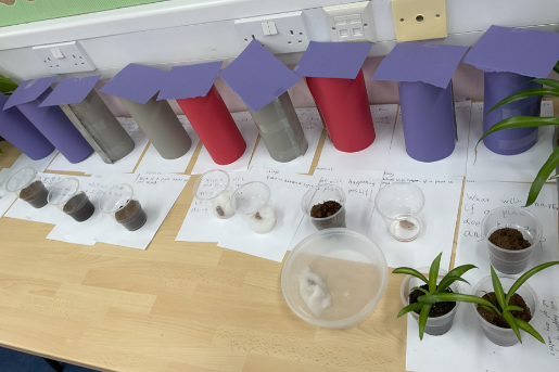 In Literacy, we have been analyzing our WAGOLL to figure out how we use the past tense to tell stories. We have also learned how the use of exciting action verbs changes the picture we paint in the minds of the reader. In Maths, we have continued our enquiry into multiplication by looking at arrays. This term, we are learning all about plants in Science. This week, we decided to set up our own experiments to prove what we think plants need the most to grow big and healthy. While some of us are testing how plants grow without any sunlight, some of us are testing if they can grow without water or soil. You can see how we have set up our experiments in the photo below.