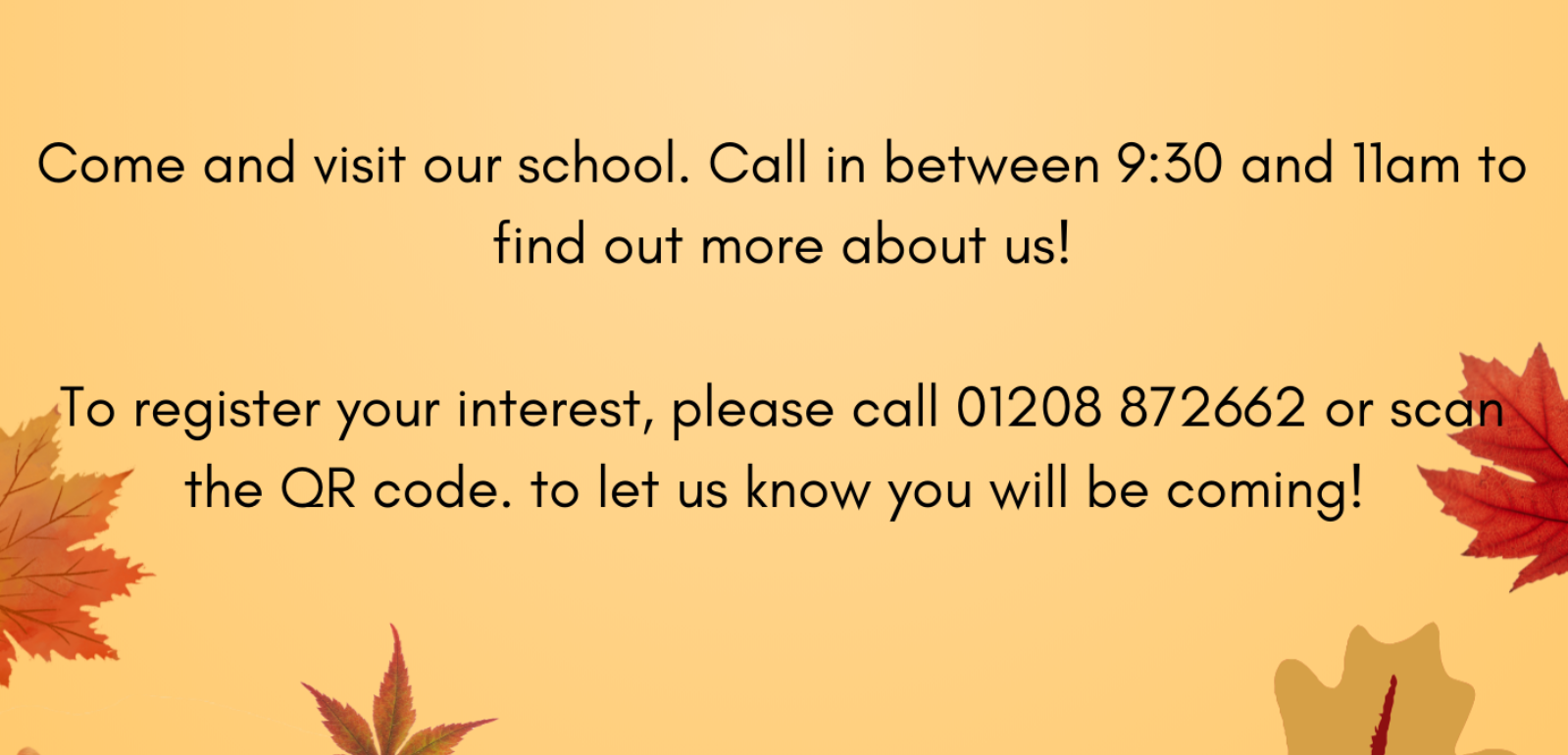 Do you know anyone looking for a school for their Reception age child in September 2026? If so, please pass them the attached information regarding our open morning on Wednesday 12th November, 9:30 - 11am.